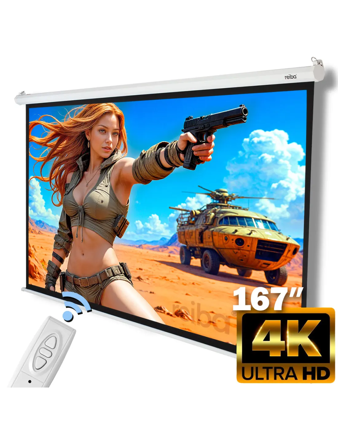 Remote Control allows convenient management of the screen from anywhere in the room. Eliminates the need to approach the screen, which is particularly practical for high installations or daily use.