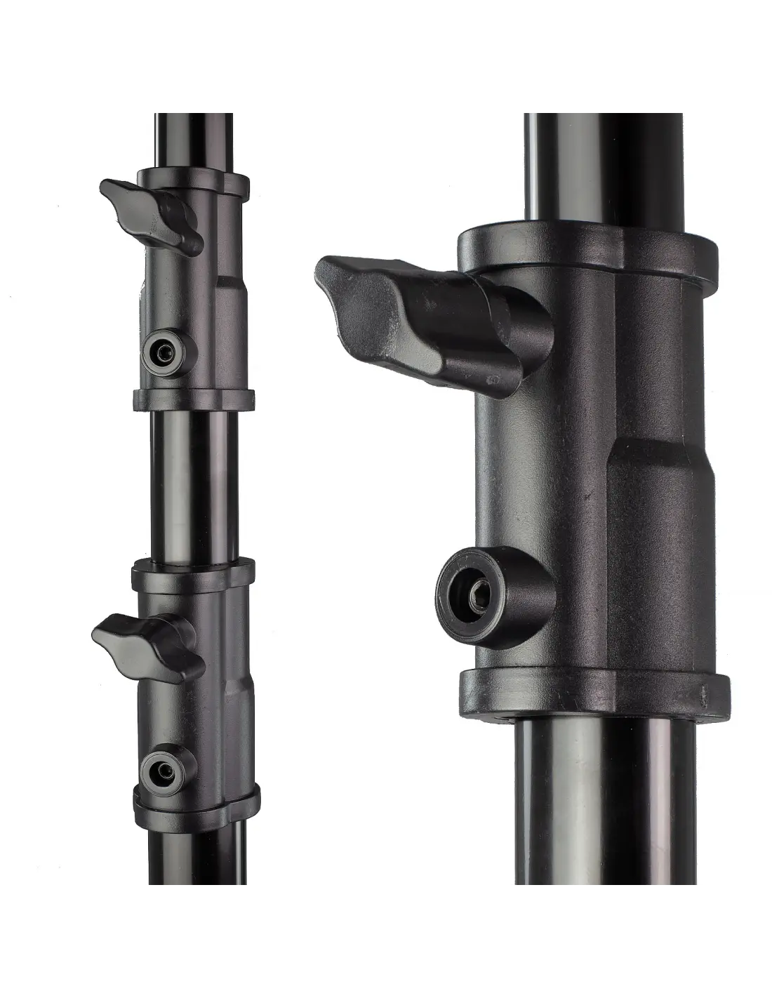 Thanks to its folded height of 88 cm and weight below 1.5 kg, the stand is extremely portable for transport and storage. Safety and stability are ensured by a wide base (95 cm) as well as large and durable section clamps. Additional stabilizers, especially important in children's and baby photography, are lower tripod spreaders that allow for additional weights to be used. The intuitive, telescopic unfolding mechanism makes the stand easy and functional to operate even for beginners.