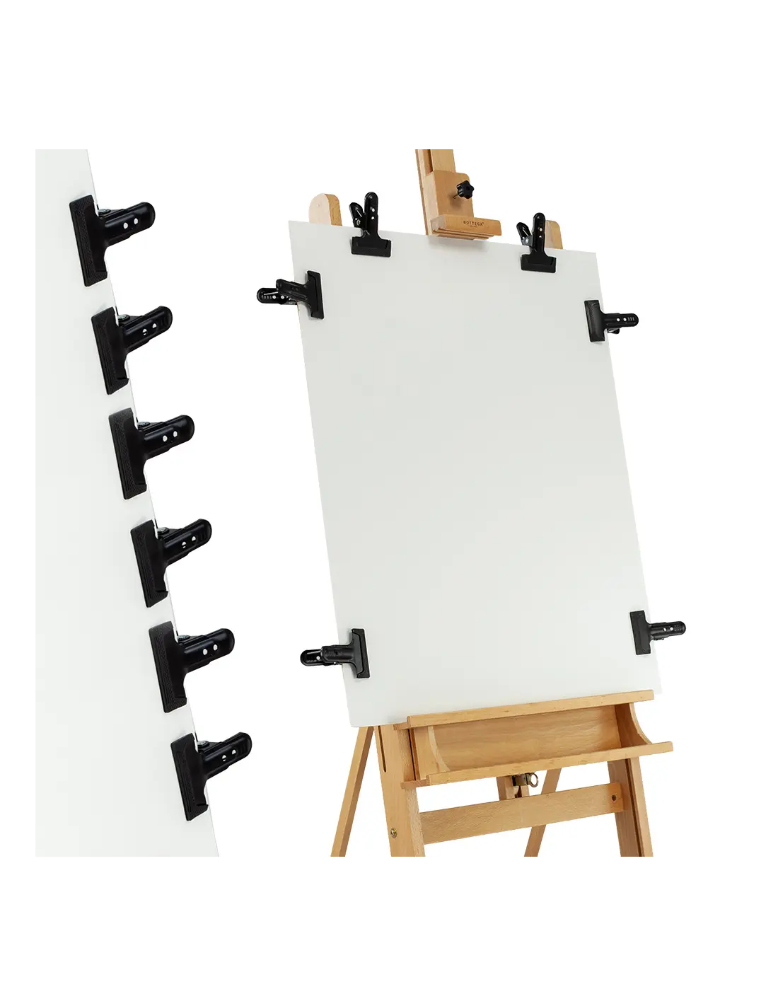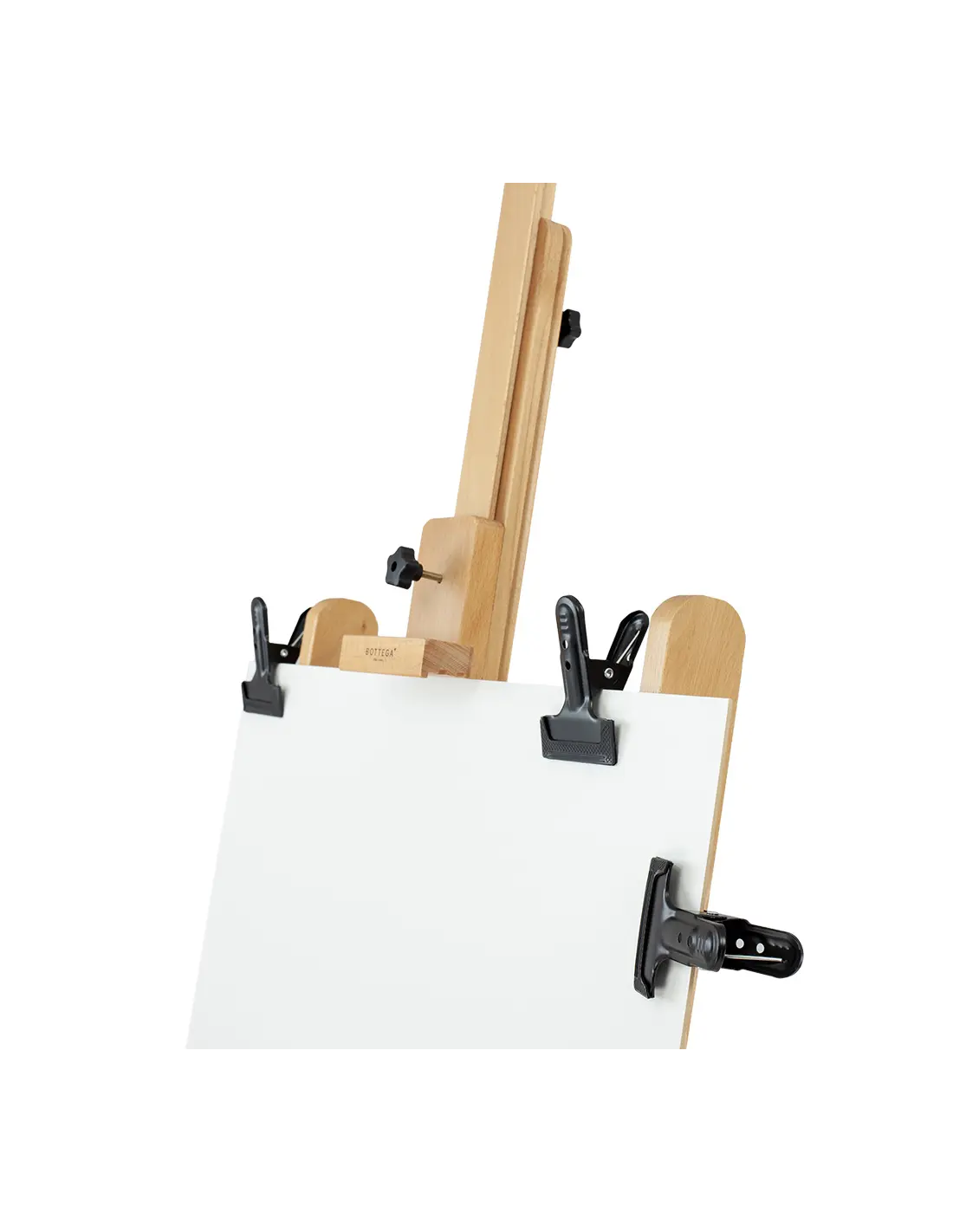 Niezawodny komplet stworzony z myślą o artystach i ich wygodzie: mobilna sztaluga studyjna Bottega wraz z sześcioma uchwytami typu klips/żabka.