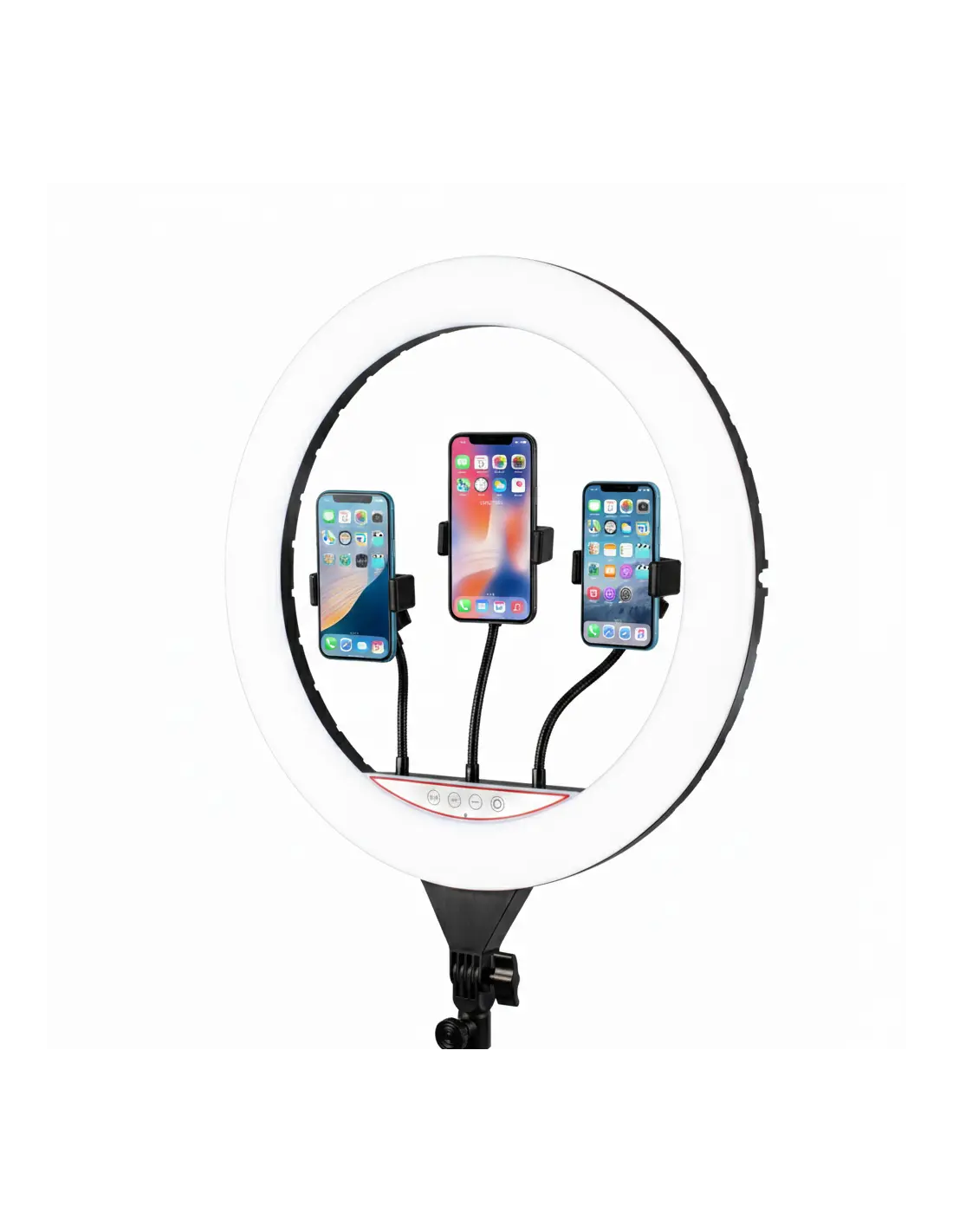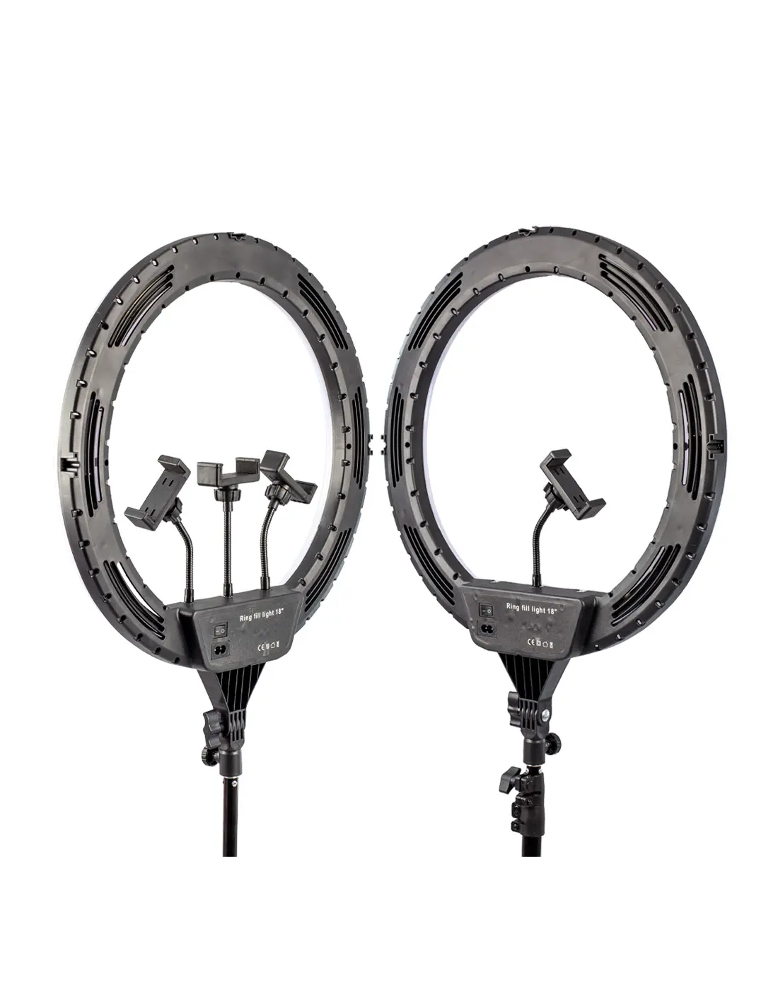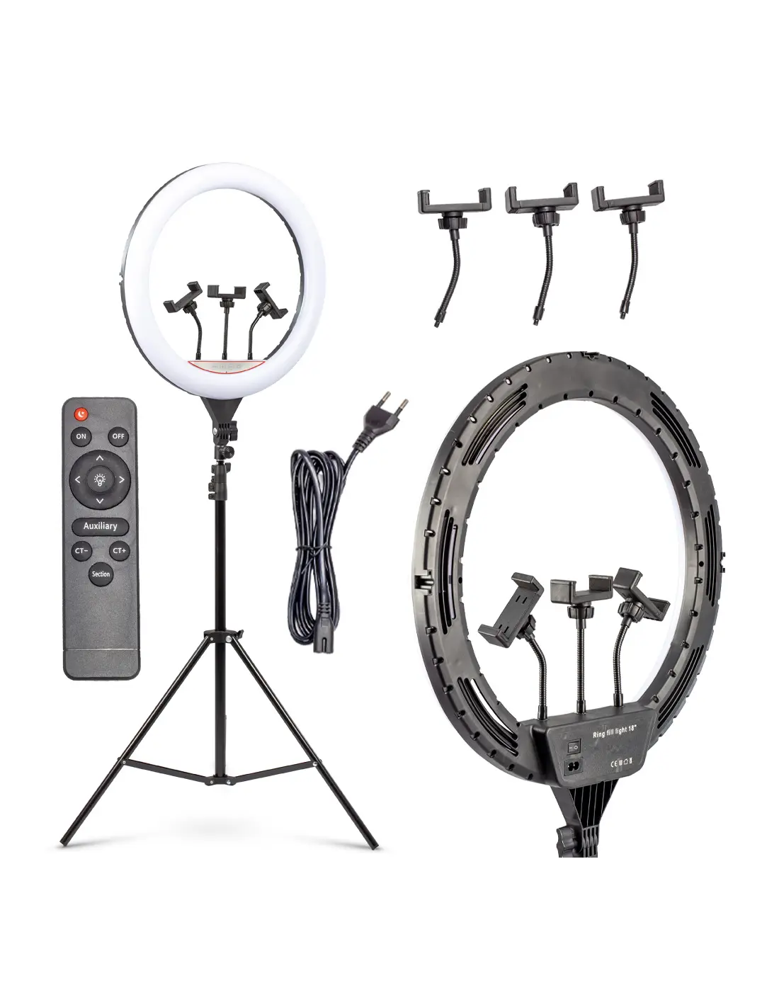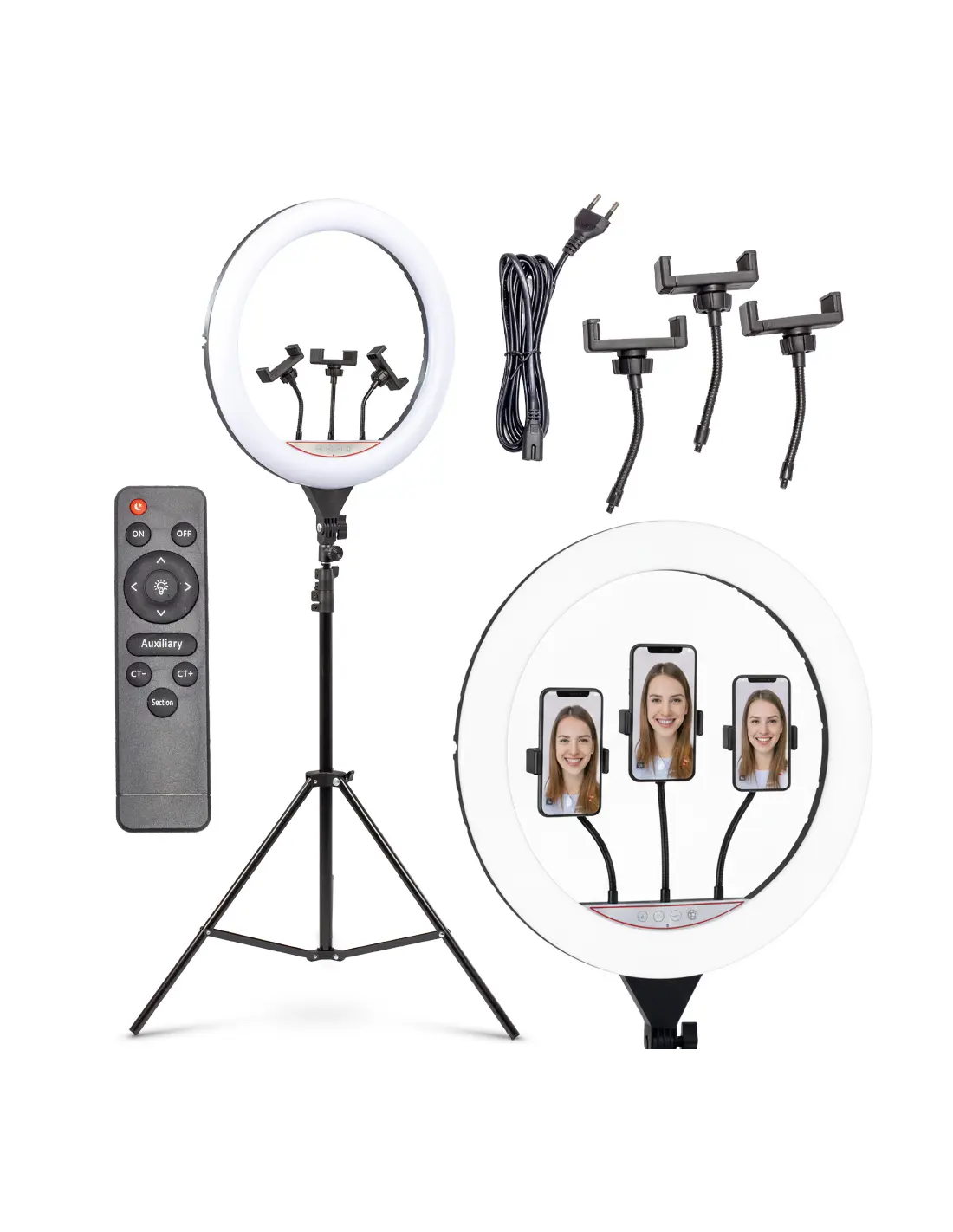 - Lampa typu RING aż 18” średnicy - z szeroką regulacją barwy oraz mocy, dzięki którym precyzyjnie oświetlisz dowolny obiekt, scenę, jak i całe wnętrze. Wraz z lampą otrzymasz kabel zasilający, który podłączysz do gniazdka.