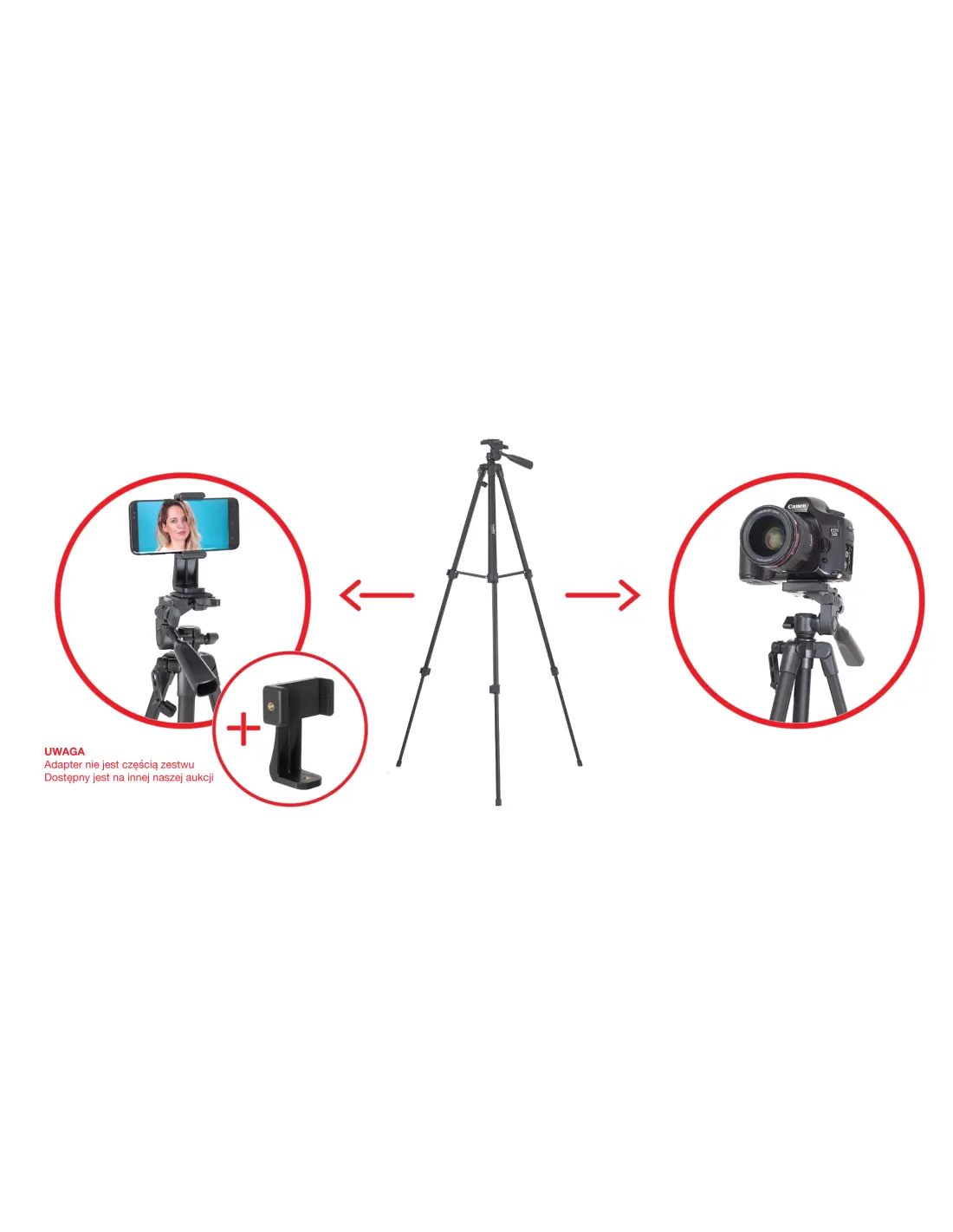 Kompaktowy statyw foto-video przeznaczony do podstawowych ujęć fotograficznych i filmowych.Umożliwia pracę z aparatami i kamerami o masie do 3 kg. Lekki, stabilny i łatwy w obsłudze, doskonały do domowego studia, transmisji na żywo czy w plener. Wyposażony w dodatkowy adapter do smartfona.
