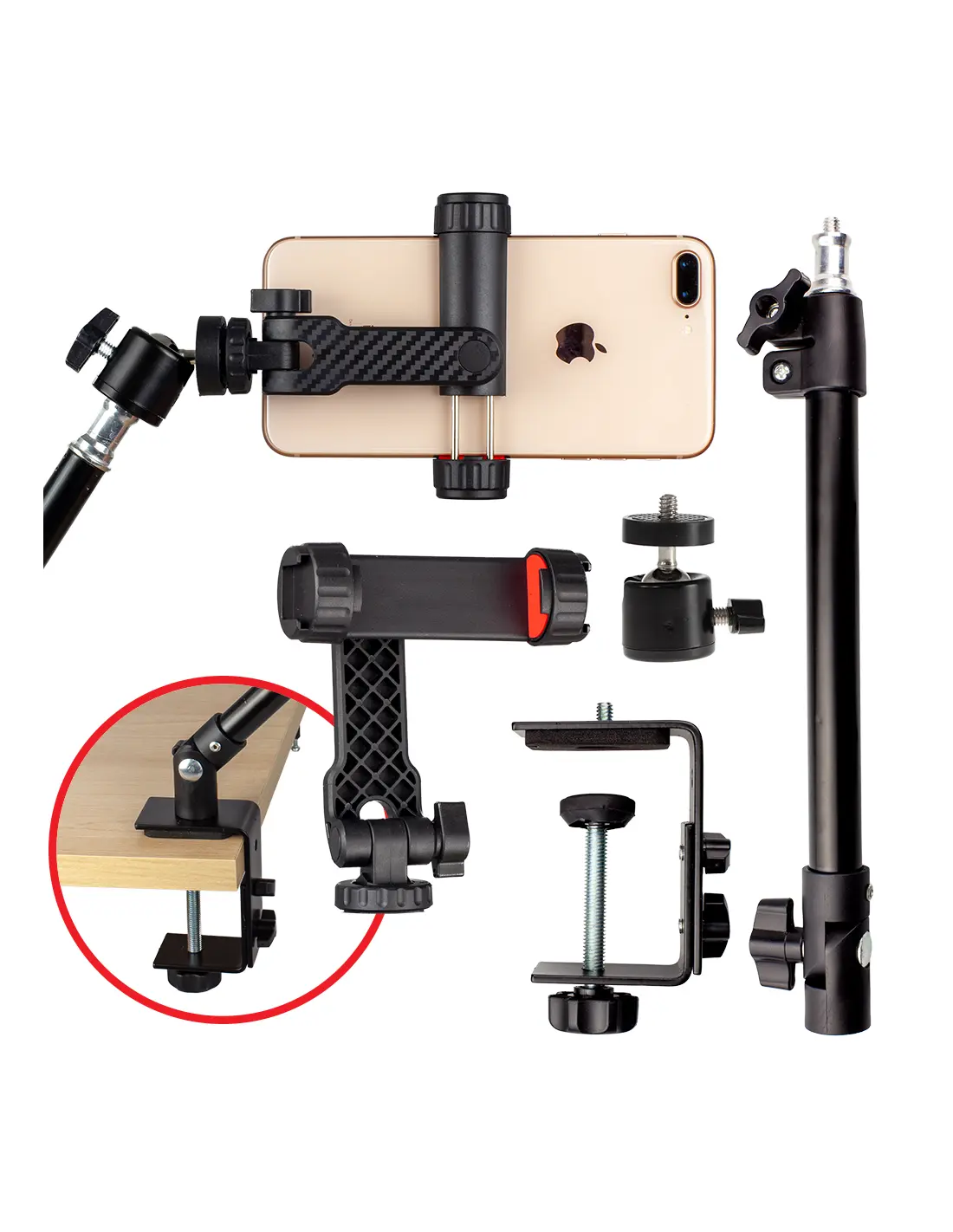 Statyw pod telefon z bonusem: mocowaniem do lamp LED i akcesoriów